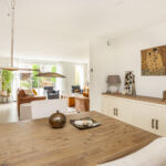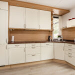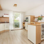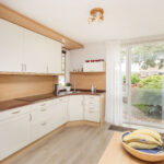 Aan de voorzijde is plek voor een royale eethoek, met uitzicht op de rustige straat. De nette, lichte keuken is uitgerust met diverse inbouwapparatuur en afzuiging naar buiten, veel kastruimte en een praktische werkindeling; ideaal voor de kookliefhebber.