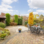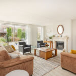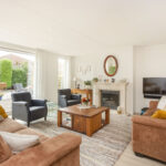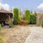 De woonkamer aan de achterzijde vormt een heerlijke plek om te ontspannen. In de woonkamer staat een prachtige gashaard van Faber, ideaal voor de winterse dagen. Via de brede schuifpui (nieuw met HR++ glas) loop je direct de brede, groene en onderhoudsvriendelijke achtertuin op het westen in – perfect voor zonnige middagen, diners in de buitenlucht of gezellige borrels onder de veranda. De voortuin biedt plaats aan twee à drie auto’s, en de aangebouwde stenen garage ca. 24m2 zorgt voor volop extra opbergruimte of een fijne hobbyplek c.q. werkplaats.