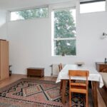 Via de sfeervolle voortuin bereik je de voordeur en betreed je de woning. In de hal maak je direct kennis met de prachtige houten vloer met vloerverwarming. Onderweg naar de woonkamer kom je de trapopgang en het toilet tegen. Bij binnenkomst in de woonkamer word je aangenaam verrast door de heerlijke hoeveelheid daglicht die je tegemoetkomt. De mooie vloer strekt zich verder uit over de grote ruimte. De woonkamer biedt ruimte aan een gezellige zithoek aan de achterzijde en comfortabele eethoek aan de voorzijde. Aan de achterzijde kijk je uit op de zonnige achtertuin, die via openslaande deuren te bereiken is. Aan de voorzijde grenst de halfopen keuken. De keuken is ruim opgezet en van alle gemakken voorzien. Stijlvolle fronten en een chic keukenblad geven de keuken een fraaie uitstraling. De keuken is uitgerust met diverse inbouwapparaten, zoals een inductiekookplaat, vaatwasser, oven en koelkast. Openslaande deuren vanuit de keuken geven toegang tot de fijne voortuin.