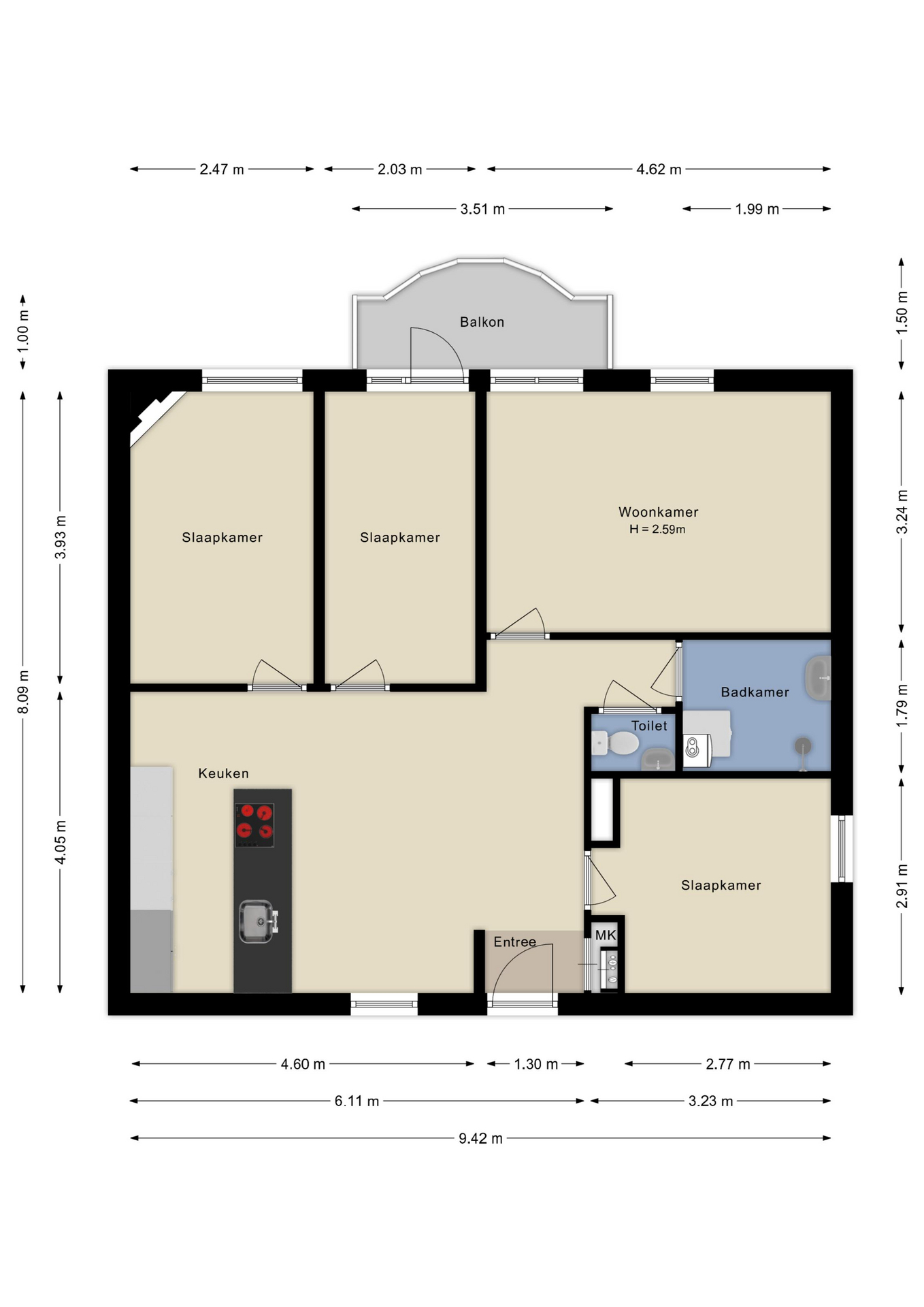 - Onderhoudsvriendelijk balkon;