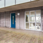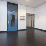 Centrale afgesloten entree met videofoon, brievenbussen en hal met lift en trappenhuis.