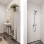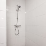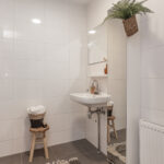 Het appartement beschikt over een modern afgewerkte en geheel betegelde badkamer met inloopdouche met thermostaatkraan, wastafel en radiator.