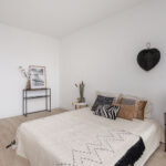 De slaapkamer is circa 14m2 groot en is voorzien van een laminaatvloer, gestucte wanden en een grote raampartij met kunststof kozijnen.