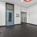 Centrale afgesloten entree met videofoon, brievenbussen en hal met lift en trappenhuis.