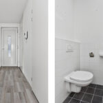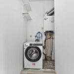 Entree, hal met laminaatvloer, gestucte wanden, videofoon, meterkast, moderne toiletruimte met hangend closet en fonteintje en inpandige berging met CV-opstelling, wasmachine- en drogeraansluiting en bergruimte.
