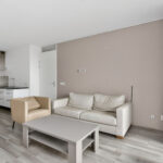 De woonkamer is ruim van afmeting, heerlijk licht door de grote raampartij en voorzien van een laminaatvloer, gestucte wanden en deur naar het balkon.