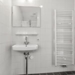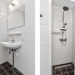 Het appartement beschikt over een modern afgewerkte en geheel betegelde badkamer met inloopdouche met thermostaatkraan, wastafel en radiator.