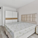 De slaapkamer is circa 15m2 groot en is voorzien van een laminaatvloer, gestucte wanden en een grote raampartij met kunststof kozijnen.