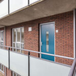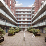 Het overdekte en in de luwte gelegen balkon heeft een afmeting van circa 6m2 en biedt vrij uitzicht op het plein aan de voorzijde van het gebouw.