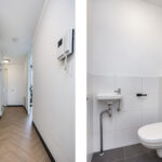 Entree, hal met visgraat PVC-vloer, gestucte wanden, videofoon, meterkast, moderne toiletruimte met hangend closet en fonteintje en inpandige berging met CV-opstelling, wasmachine- en drogeraansluiting en bergruimte.