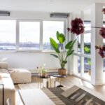 De zeer ruime woonkamer is circa 31m² groot en heeft een oase van licht door de grote raampartijen. Direct wordt je aandacht getrokken naar het fantastische uitzicht, door elk raam een ander vergezicht, wij verzekeren dat dit echt spectaculair is. Vanuit de woonkamer zijn de open keuken en serre/loggia te bereiken.