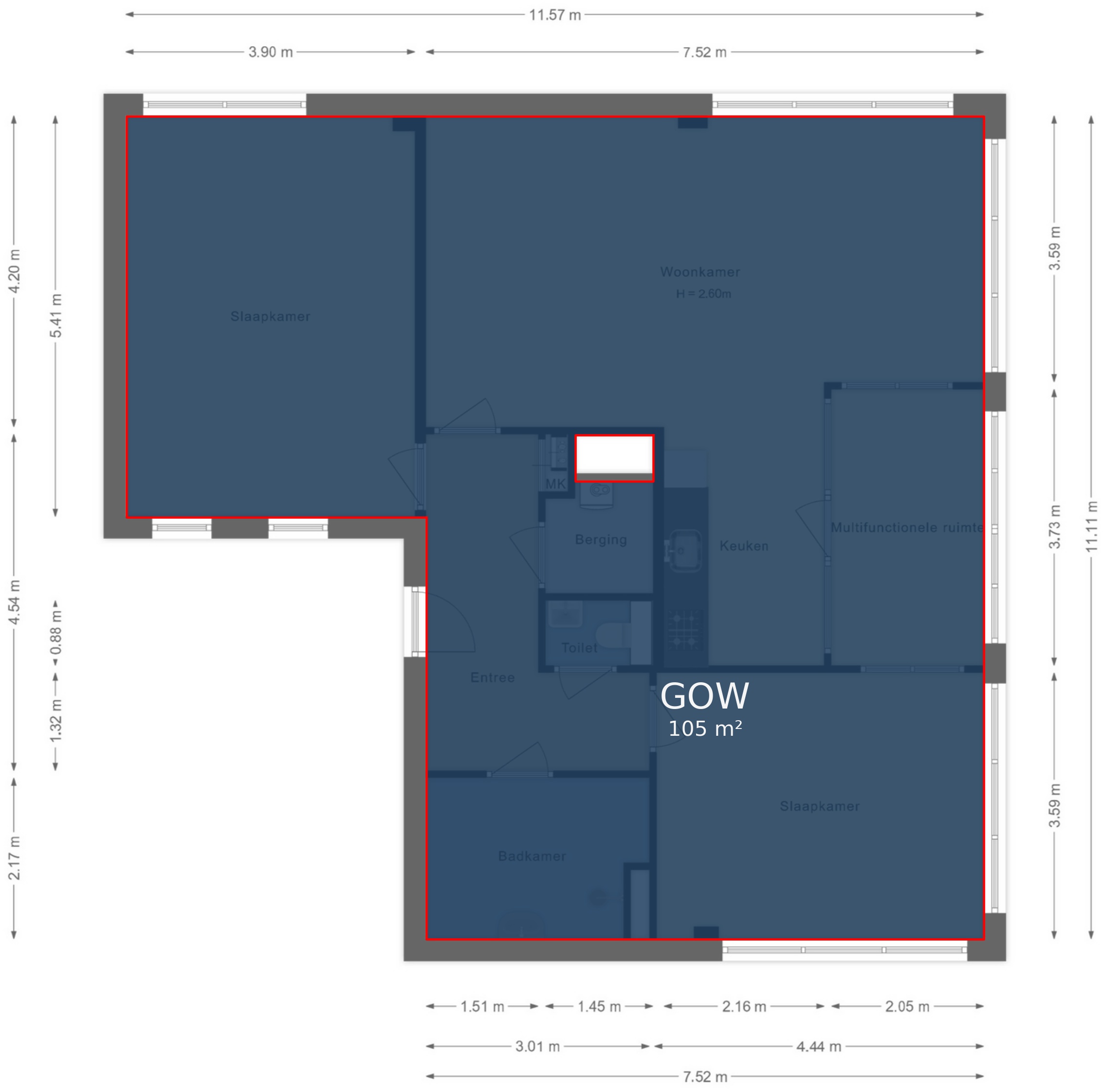 - Woonoppervlakte circa 105m²;