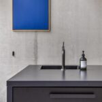 De 1e verdieping is ingericht als een chique en stijlvolle woonkamer. Ook hier komt de industriële look weer terug met de betonnen wand, deels strak gestukte muren en de gietvloer. Dat samen met de enorme raampartijen en vide maakt dit tot een lichte en prachtige woonkamer. Op deze verdieping vind je tevens de badkamer. De badkamer is afgewerkt met een interessante beige tegel en gietvloer en is voorzien van een wastafel, toilet en inloopdouche.