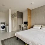 Wat prettig is aan deze verdieping is het feit dat je hier nog erg veel ruimte hebt. Er is genoeg ruimte voor een groot tweepersoonsbed, een fijne werkplek en een riante kast. Boven de trap is handig gebruik gemaakt van de ruimte en hier is een opslag gecreëerd. Hier kan je gemakkelijk je spullen opbergen. Verder vind je op deze verdieping ook de wasmachineaansluiting en de technische ruimte.