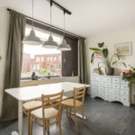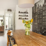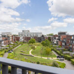 3e verdieping: Entree, hal met meterkast, toiletruimte, ruime stookruimte, toegang tot de royale woonkamer met nis en grote raampartij; eveneens ruime open keuken met fijne eethoek en modern keukenblok voorzien van inbouwapparatuur (combi-oven, inductiekookplaat, afzuigkap, koel-/vriescombinatie, Quooker en vaatwasser). Vanuit de eethoek is het royale balkon op het westen bereikbaar, met een groen uitzicht over moestuinen. In de keuken bevindt zich tevens de deur naar de trap naar: