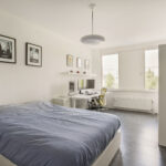 4e verdieping: Overloop met kast met opstelplaats voor witgoed; drie slaapkamers, alle gelegen aan de achterzijde met prachtig uitzicht op het groen; ruime moderne badkamer voorzien van douche, dubbele wastafel en tweede toilet.