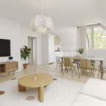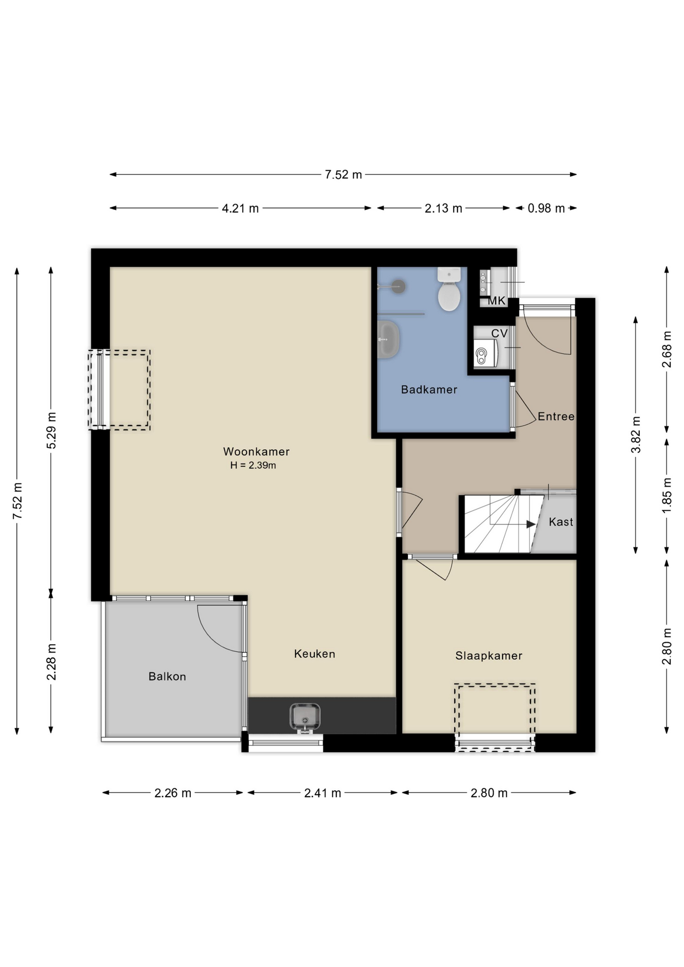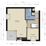 Via het gezamenlijke portiek bereik je de entree van de woning. In de hal vind je de meterkast, de cv-kast met Intergas ketel (bouwjaar ca. 2020) en toegang tot de overige vertrekken. De woonkamer is licht dankzij de vele ramen. Aangrenzend bevindt zich de open keuken met eenvoudig keukenblok en toegang tot het balkon – hier kun je heerlijk in de buitenlucht ontbijten of even ontspannen..