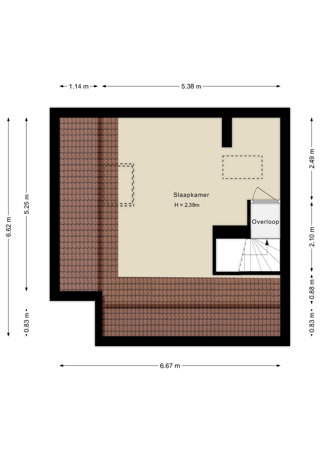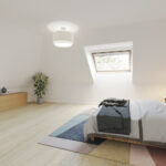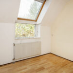 Aan de achterzijde ligt de eerste slaapkamer met dakraam, ideaal als werk-, slaap- of logeerkamer.