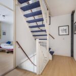 Ruime overloop met laminaatvloer, spuitwerkwanden en trapopgang.