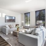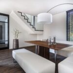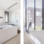 • Aluminium, onderhoudsvrije kozijnen, dimbare plafondspots, vloerverwarming/koeling en Fibaro home automation systeem bedienbaar op een app en ingebouwde IPad in de woonkamer