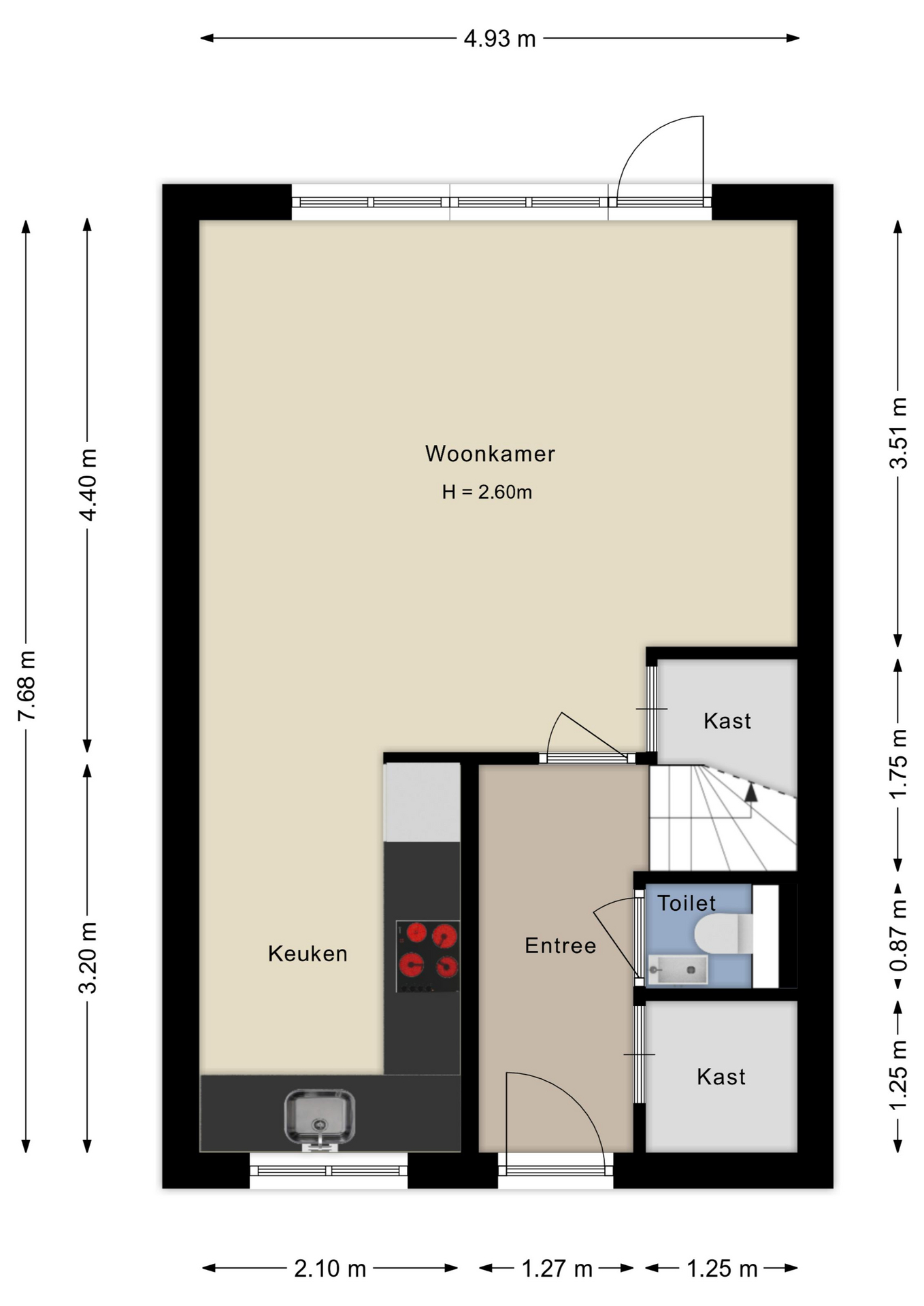 De slim opgezette keuken aan de straatzijde is uitgerust met de nodige inbouwapparatuur, om jouw kookkunsten te ondersteunen. Op de bovenverdieping vind je twee goed bemeten slaapkamers, waarvan de grootste uitnodigt tot balkonbezoek bij zonsopkomst. De badkamer biedt een goed begin van de dag met zijn inloopdouche, modern toilet en een stijlvolle wastafel, geschikt voor de snelle ochtendroutine of een ontspannende douche na het werk. De wasmachine en droger zijn praktisch opgesteld in de badkamer.