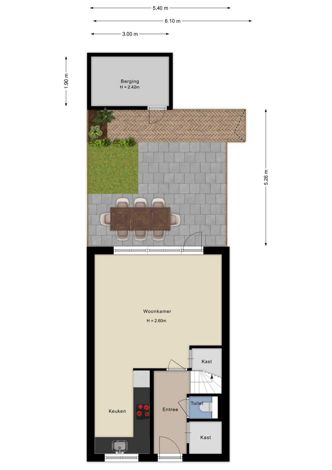 Bij de woning hoort eveneens een externe berging, met elektra, om je fietsen veilig te stallen en je overige spullen op te bergen.