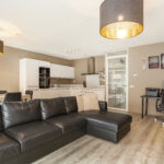 The living area (approx. 40 m2) is the heart of the home: spacious and bright. Large windows and double doors with a French balcony provide pleasant light and an open feel. The modern open kitchen with Siemens built-in appliances makes this a perfect place to cook, enjoy drinks and linger over dinner.