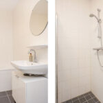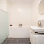 Bathroom with walk-in shower and bathtub, plus washbasin; toilet separate in the hall.