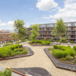 Representatieve entree met postbussen, lift en trappenhuis. Vanuit hier heb je toegang tot de parkeergarage met je eigen plek (incl. laadpunt) en de privé(fiets)berging. Aan de rustige binnenzijde ligt de groene, gezamenlijke binnentuin: een fijne plek om te zitten, die bovendien door bewoners zelf wordt onderhouden — goed voor de sfeer én de betrokkenheid in het complex.