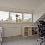 Ook op deze verdieping tref je twee ruime slaapkamers aan, die beide zijn voorzien van een brede dakkapel met kunststof kozijnen, draai-/kiepramen, HR++ beglazing, horren en elektrische rolluiken. De kamers zijn strak afgewerkt met een laminaatvloer, glad gestucte wanden en geïsoleerde plafonds en voorzien van bergruimte achter de knieschotten met schuifdeuren. In de slaapkamer aan de voorzijde bevinden zich daarnaast de aansluiting voor de wasmachine en droger, omvormer voor de zonnepanelen en een separate, afgesloten ruimte met de cv-ketel en de mechanische ventilatie-unit.