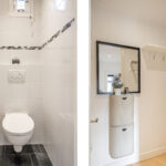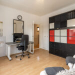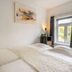 Via de vaste trap bereikt u de overloop op de tweede verdieping. Hier bevindt zich de aansluiting voor de wasmachine en droger. De overloop geeft toegang tot twee slaapkamers en de badkamer. De hoofdslaapkamer aan de achterzijde is ruim en licht. De tweede slaapkamer aan de voorzijde is perfect te gebruiken als kinder-, werk- of logeerkamer. De badkamer is uitgerust met een design-radiator, douche en een moderne wastafel.