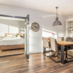 Zeer ruime hal met voldoende ruimte voor een garderobe, meterkast en toegang tot de diverse vertrekken. De sfeervolle en lichte woonkamer is strak afgewerkt, beschikt over grote raampartijen, wat zorgt voor een fijne, lichte sfeer en geeft toegang tot het royale balkon gelegen op het zuidwesten. Vanuit de woonkamer heb je middels openslaande deuren toegang tot de eerste slaapkamer. Deze slaapkamer grenst aan het balkon en beschikt over een vaste kast.