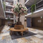 Gemeenschappelijke entree met bellentableau en brievenbussen, centrale hal/atrium met zitjes, lift en toegang tot het trappenhuis en bergingen.