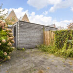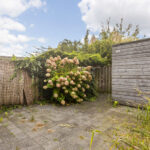 De onderhoudsvriendelijke achtertuin is geheel bestraat en biedt dankzij de ligging op het zuiden de hele dag zon. Een houten berging met elektra maakt het opbergen van fietsen of tuingereedschap eenvoudig. De tuin is tevens bereikbaar via een achterom.