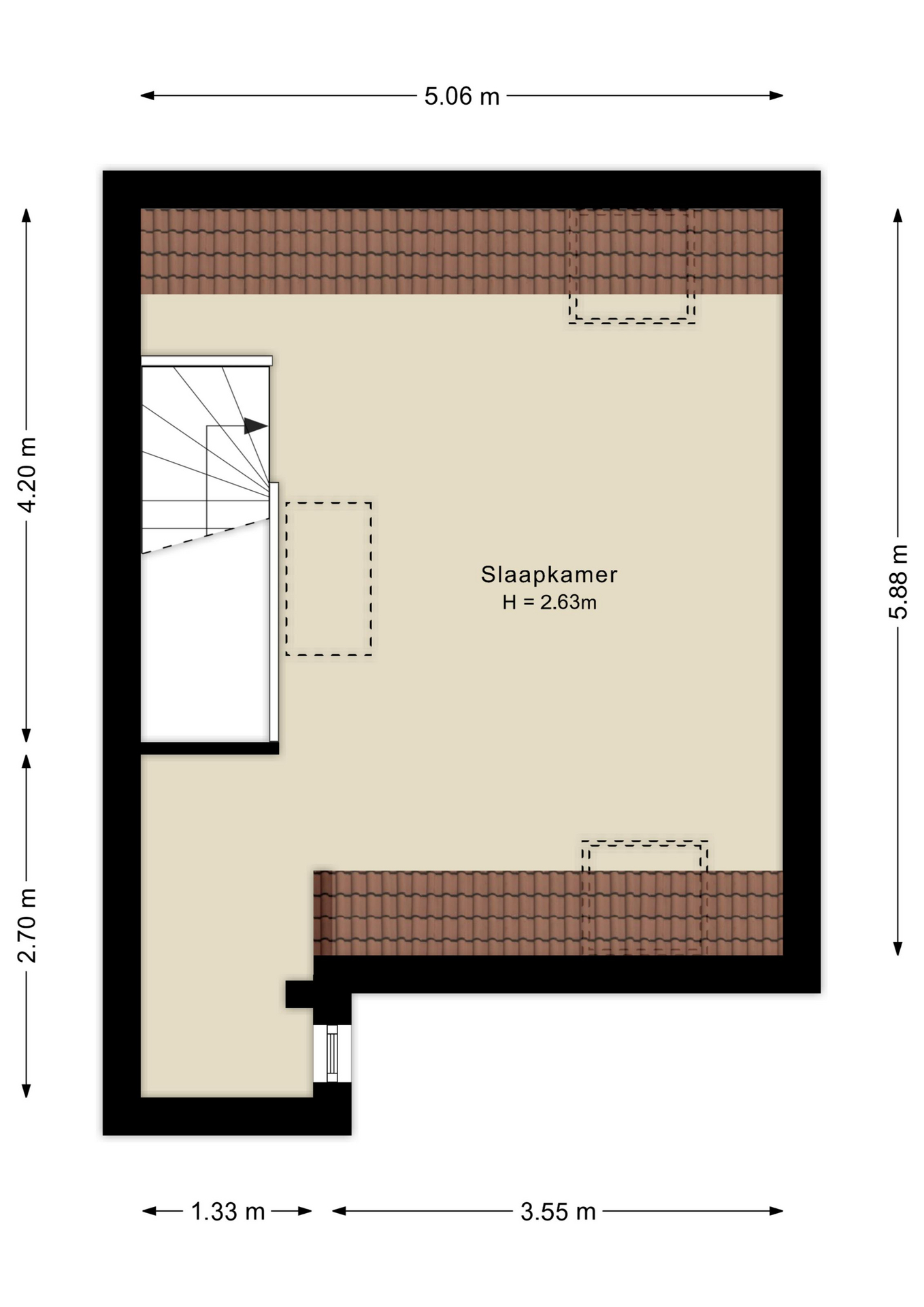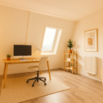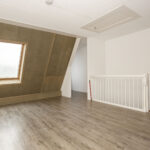 De zolderverdieping is een veelzijdige ruimte die uitstekend geschikt is als master bedroom, werkplek, hobbyruimte of speelkamer. Twee grote Velux-dakramen zorgen voor veel daglicht, terwijl er voldoende plaats is voor zowel kasten als een bureau.