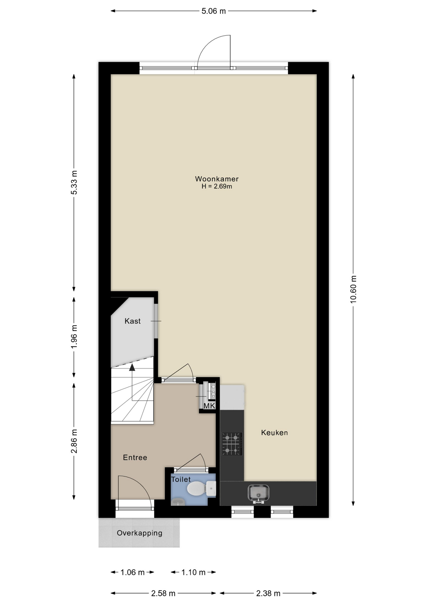 Via de entree met garderobe, meterkast en toiletruimte met fontein bereik je de woonkamer. De tuingerichte woonkamer voelt licht en ruim aan en beschikt over een handige trapkast en directe toegang tot de achtertuin. De open keuken in hoekopstelling is uitgerust met diverse inbouwapparatuur, waaronder een 4-pits gaskookplaat, afzuigkap, koelkast, vaatwasser en combi-oven. De indeling biedt veel werk- en kastruimte.