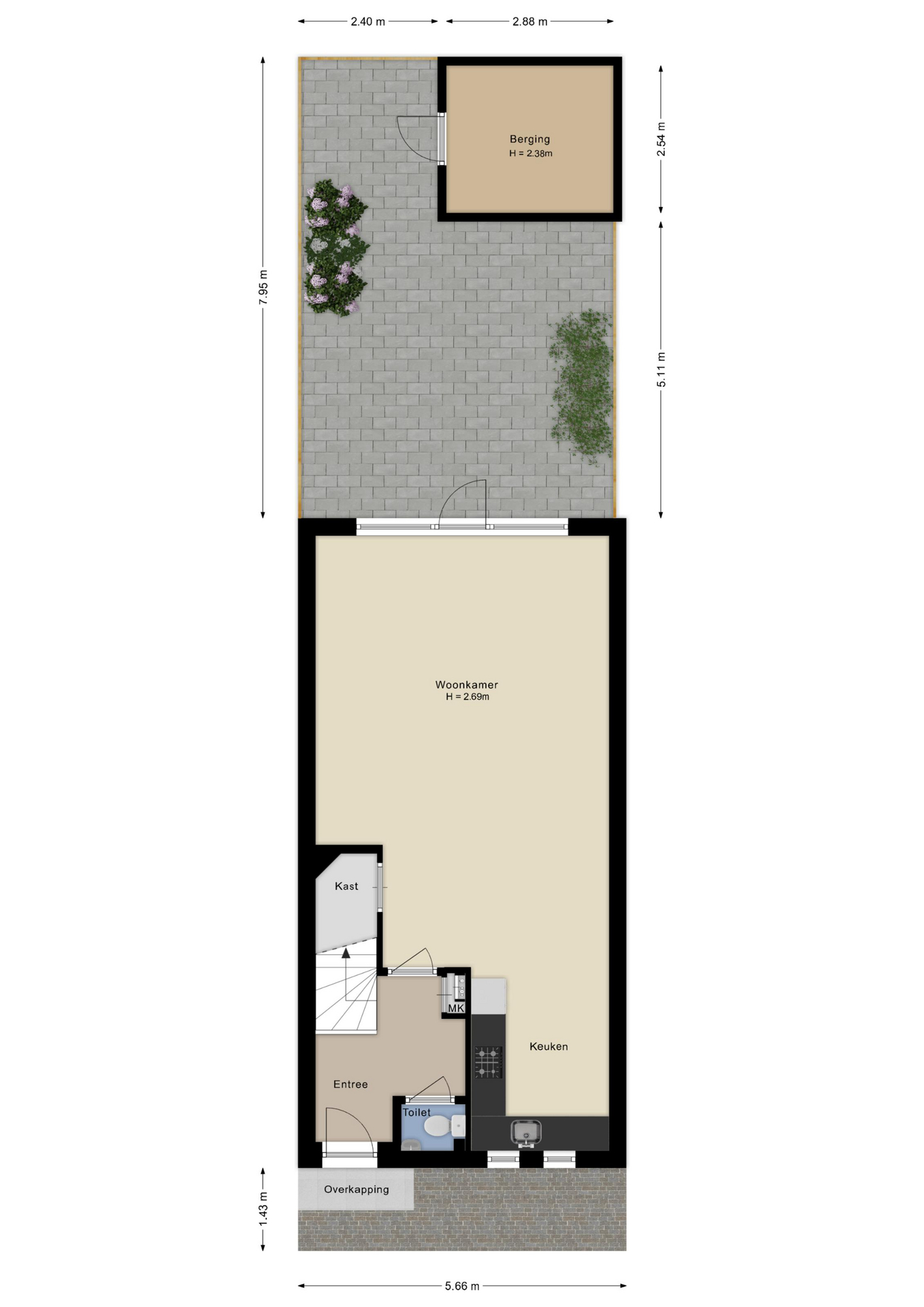 - Zonnige achtertuin gelegen op het zuiden. Achterom bereikbaar.