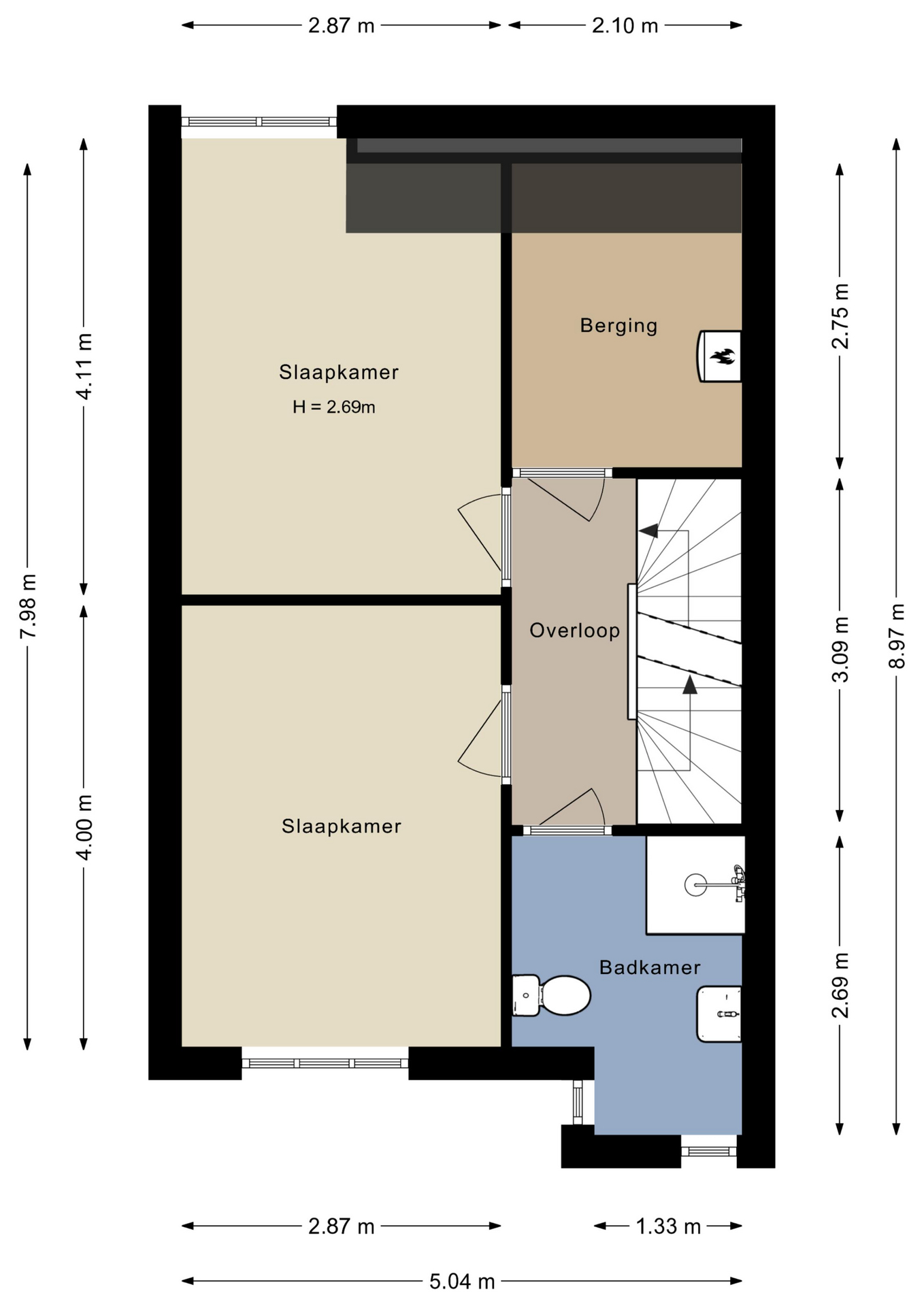 Eerste verdieping: Op de eerste verdieping vind je twee ruime slaapkamers; één aan de voorzijde en één aan de achterzijde, die extra ruimte biedt door de dakkapel. De badkamer is een heerlijk lichte ruimte en is uitgerust met een regendouche, een wastafel en een tweede toilet. Ook is er een raam voor natuurlijke ventilatie. De grote inpandige berging biedt ruimte voor de cv-ketel, de wasmachineaansluiting en de mechanische ventilatiebox, ideaal voor het opbergen van je huishoudelijke apparaten.