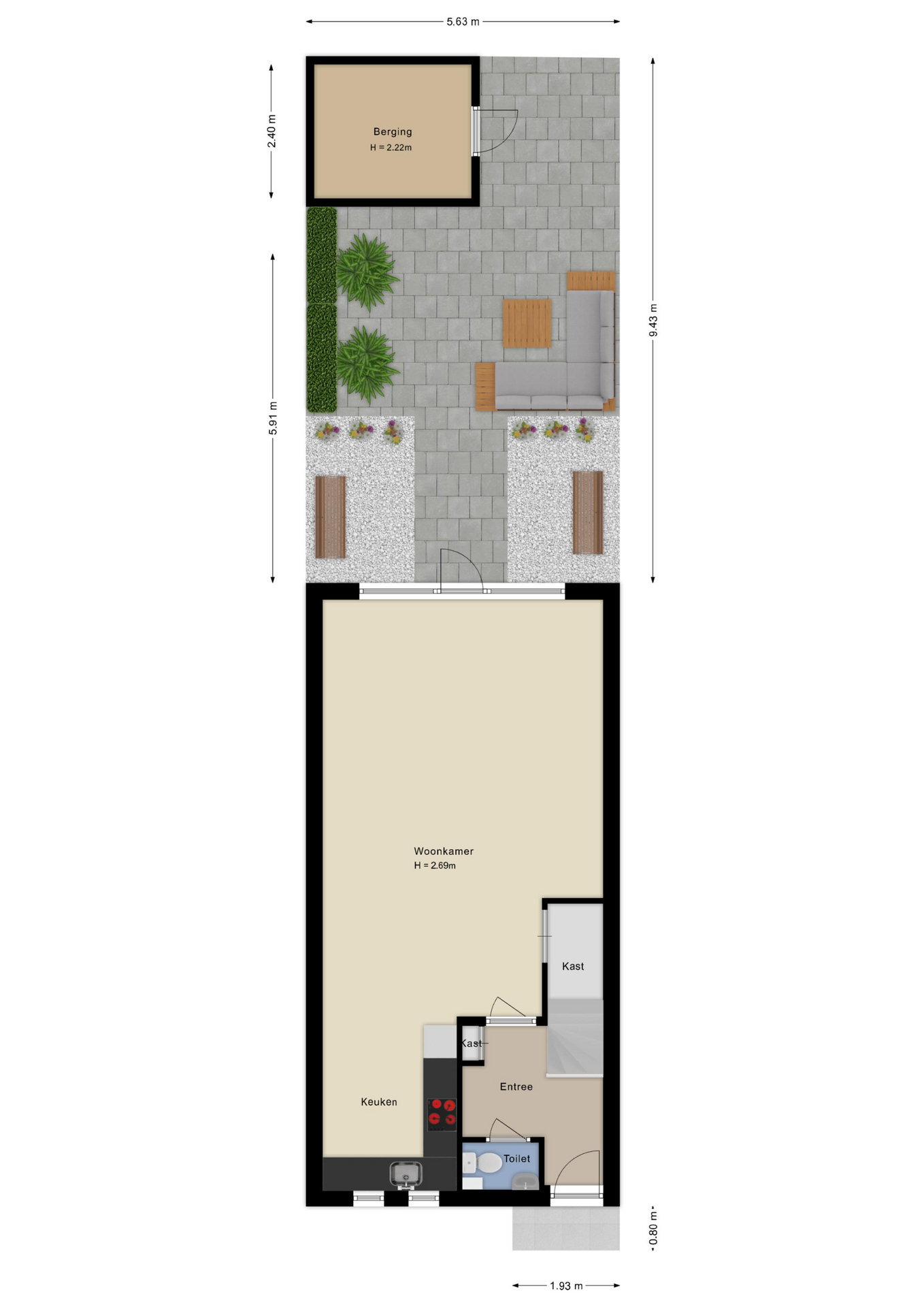 Buitenruimte: De achtertuin is een fijne plek om het hele jaar door van de zon te genieten. Deze is volledig bestraat, waardoor het onderhoud minimaal is. Er is een houten berging met elektriciteit, ideaal voor het opbergen van tuingereedschap of fietsen. Via een achterom bereik je de tuin, wat extra gemak biedt. De tuin ligt op het zuiden, wat betekent dat je de hele dag kunt genieten van de zon en het natuurlijke licht. Bovendien zorgt dit voor een lekker lichte woonkamer, wat de ruimte nog aangenamer maakt.