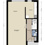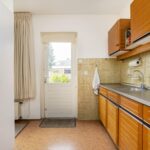 De doorzonwoonkamer is ruim van afmeting en heeft vrij uitzicht. De vele ramen (waaronder een zijraam) zorgen ervoor dat de woonkamer zéér licht is. Aan de achterzijde is de keuken gelegen. De keuken is voorzien van een keukenblok in rechte opstelling met 4-pits gasfornuis, afzuigkap en koel/vriescombinatie.