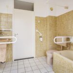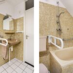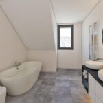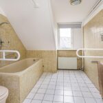 De badkamer is voorzien van een ligbad, wastafel, toilet, aansluiting voor wasmachine en raampartij.