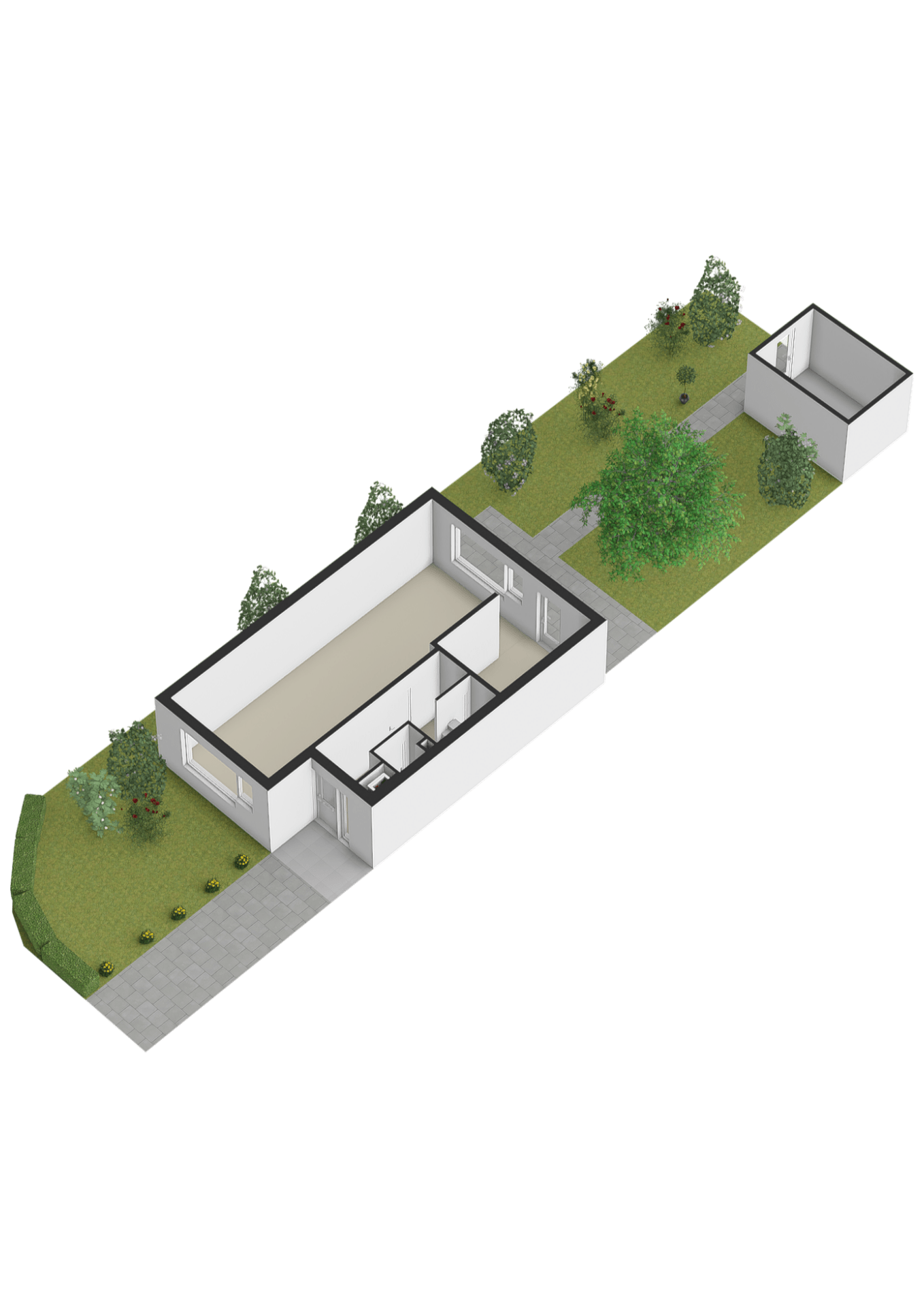 Ruime voortuin, mogelijkheid voor het creëren van een parkeerplek.