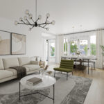 Eigen entree, hal met meterkast en toegang naar de keuken en de woonkamer. De woonkamer en keuken zijn aan de terraszijde gelegen. In de keuken is ook de…