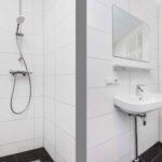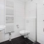 De badkamer is betegeld met een moderne tegel en voorzien van een inloop douche, vaste wastafel, toilet en de witgoedaansluitingen.