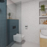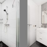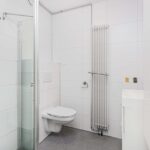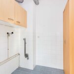 De badkamer is betegeld met een moderne tegel en voorzien van een inloop douche, vaste wastafel, toilet en de witgoedaansluitingen.