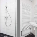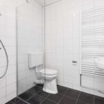 De badkamer is betegeld met een moderne tegel en voorzien van een inloop douche, vaste wastafel, toilet en de witgoedaansluitingen.