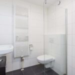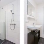 De badkamer is betegeld met een moderne tegel en voorzien van een inloop douche, vaste wastafel, toilet en de witgoedaansluitingen.