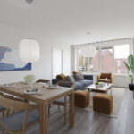De woonkamer voelt heerlijk ruim aan door de grote raampartij. Het balkon is gelegen op het zonnige zuidwesten (middag- en avondzon).