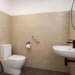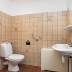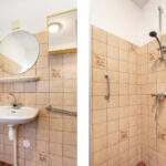 De badkamer is voorzien van een inloop douche, vaste wastafel, toilet en de witgoedaansluitingen.