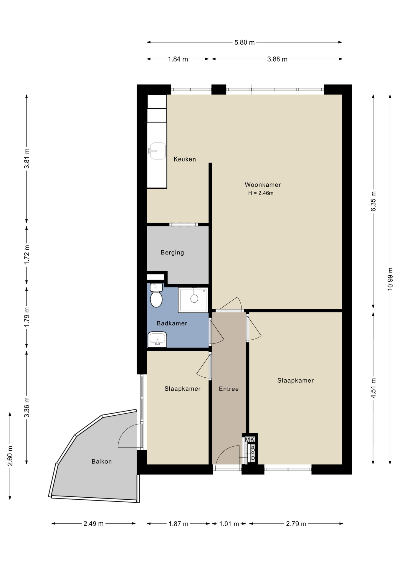 Via de hal kun je naar de twee slaapkamers en de badkamer.